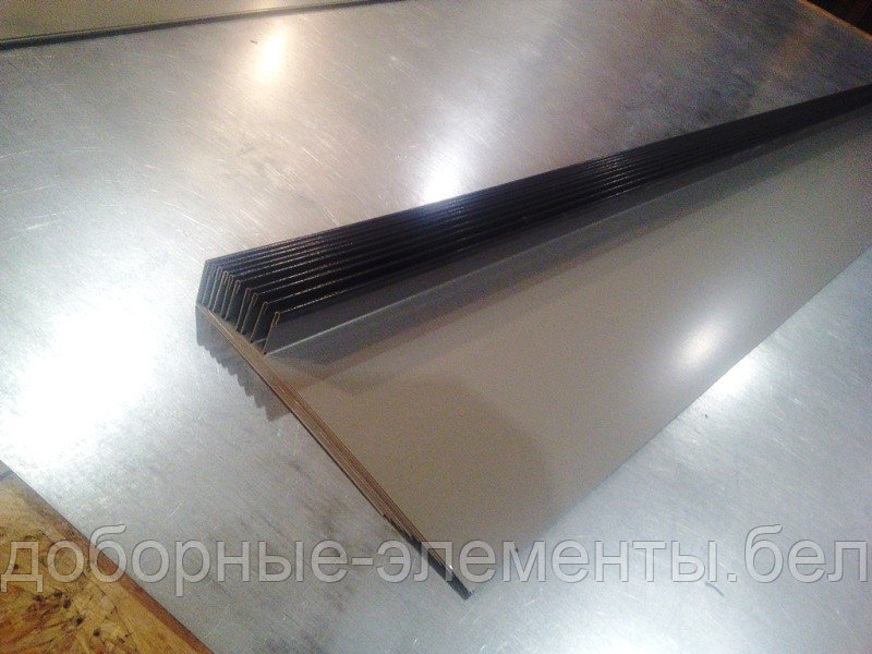 Лобовая планка изготавливается из оцинкованной стали Zn-0.45-0.5 мм. а также оцинкованной стали с полимерным покрытием по RAL- (8017,7024,9003,3005,3011,3009,6005,9005 и др).